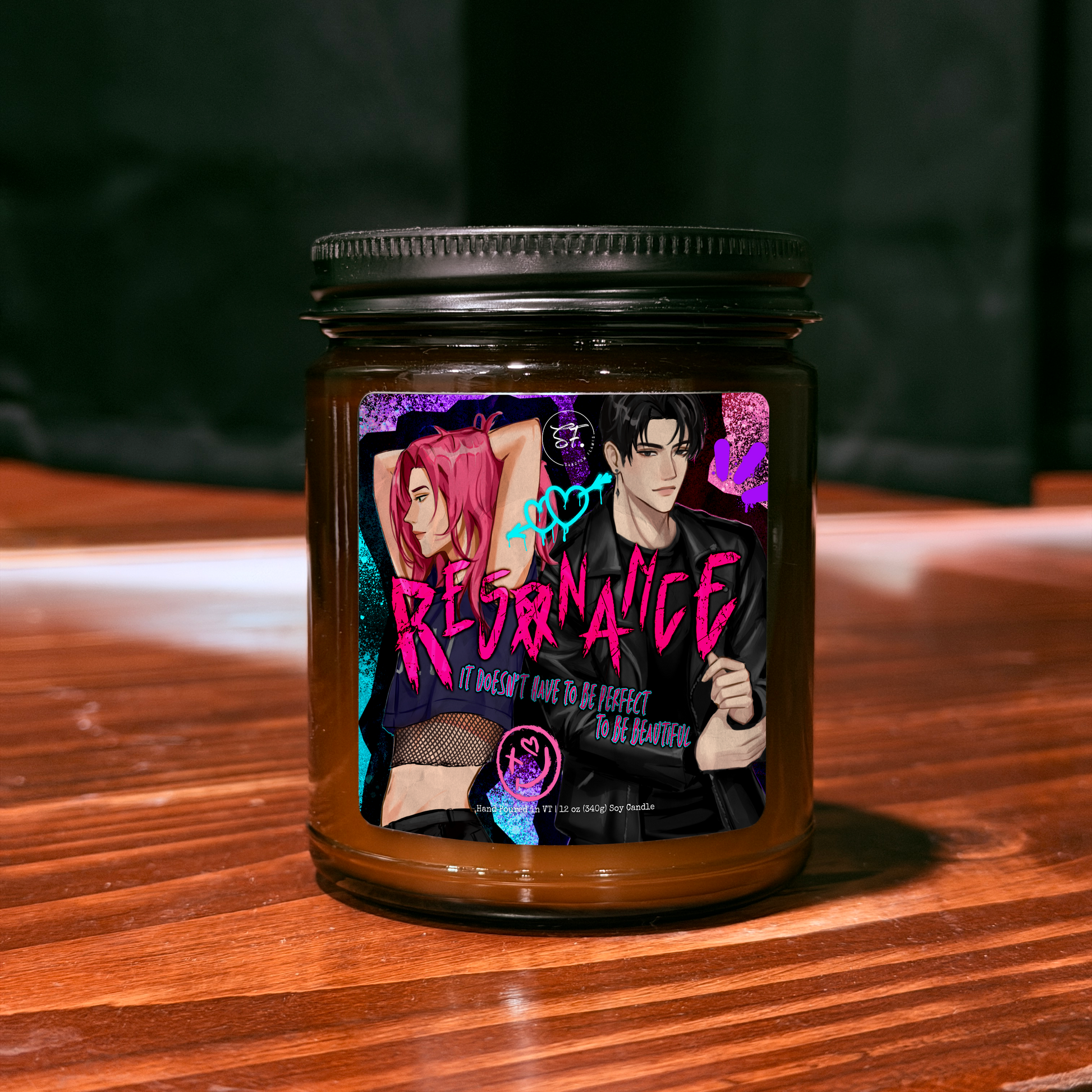 Special Edition: Straight-sided, matte black glass with matte black lid. Label on side with full artwork and writing on the side. Height: 3.53", Diameter: 2.98". These vessels may change once in a while!